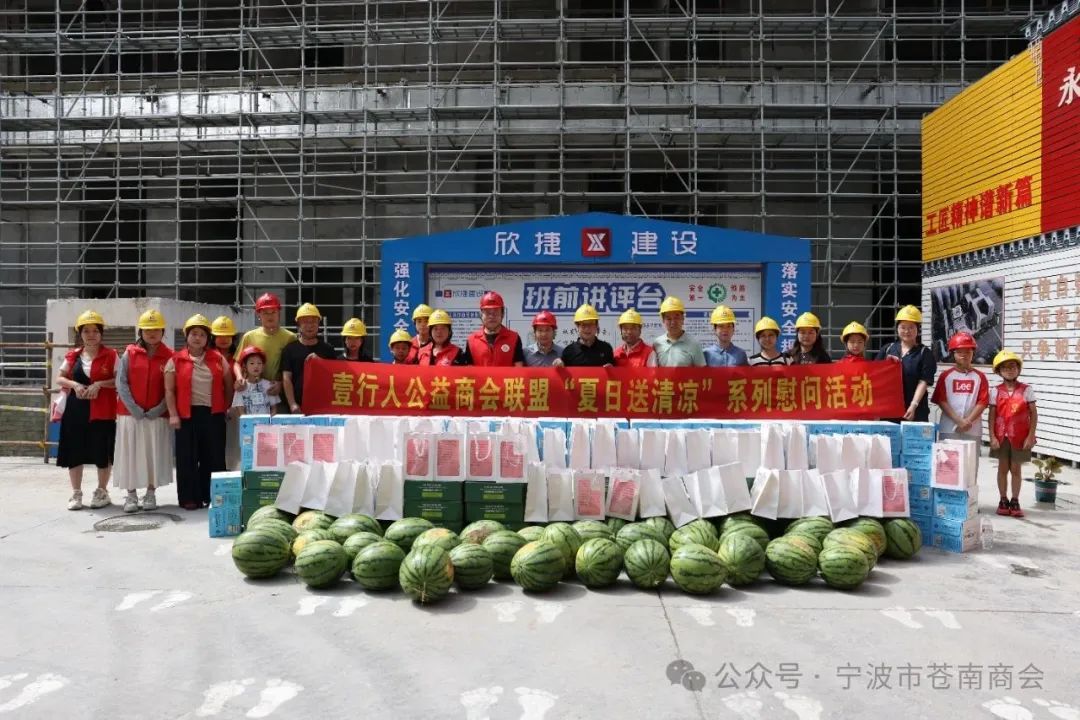 2025816日,烈日炎炎,壹行人公益商会联盟爱心团队启动“送清凉”活动第三站,前往高新区浙江欣捷建设有限公司建筑工地,开展“夏日送清凉”公益活动。此次活动,由宁波市苍南商会联合宁波市贵州商会、宁波市甘肃商会、宁波市山西商会、宁波市重庆商会、宁波市温州商会、宁波市宣城商会、宁波市金华商会、宁波市巴中商会、宁波市泸州商会、宁波市滁州商会、江北区壹行人公益发展中心、云升大件物流(宁波)有限公司、宁波北仑通运建筑安装工程有限公司、宁波欣鼎装饰工程有限公司等爱心单位企业共同开展,各方齐心协力,各商会志愿者40余人共同参加,宁波市苍南商会苍龙青年分会执行会长魏乃静、会员吴振行、谢作权等志愿者积极参与,为建筑工人们送上了一份夏日的清凉与关爱。