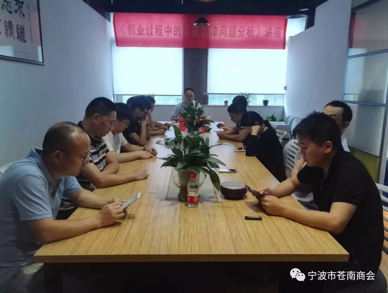 为进一步强化商会会员法律意识,增强商会会员在创业过程中所碰到的问题,能合理运用法律武器维护自身合法权益的法制观念,增强政治敏锐性,提高商会会员依法维权的能力和法律素质,8月26日下午2点在宁波市苍南商会办公室邀请到了张书达律师及张存州律师、蔡庆元律师、陈邦右律师解答有关法律方面的问题。